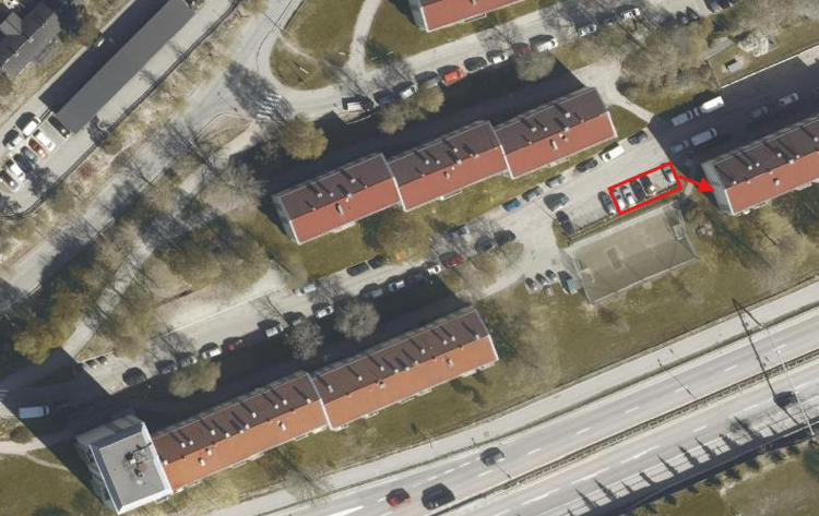 Onsdag 15. april og torsdag 16. april starter arbeider med etablering av brakkerigg for arbeidere. Brakkeriggen plasseres på parkeringsplassen ved ballplassen ved Linderrudsletta 7A, se område markert i rødt firkant på bilde under.